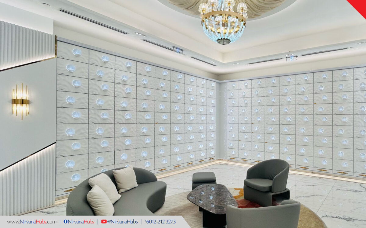 The niche panels of the new A2-S2 columbarium suite feature a primary theme of white symbolising compassion and wisdom. Under the illumination of light, delicate and translucent glass images of the tranquil Buddha are displayed on the niche panels, watching over departed loved ones