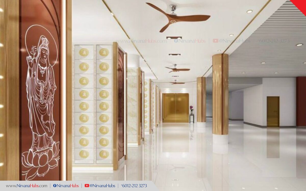 全新推介的 HALL G 骨灰殿,坐落富贵山庄(巴生)宏伟庄严的三圣宫大殿之中,整体空间清净明亮,为家属营造出一个庄重、舒适又宁静的祭拜氛围。