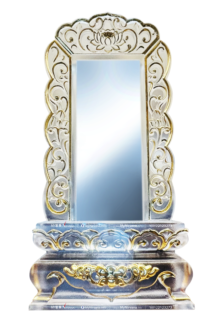 水晶玻璃打造的神主牌以精致高雅的金边点缀,